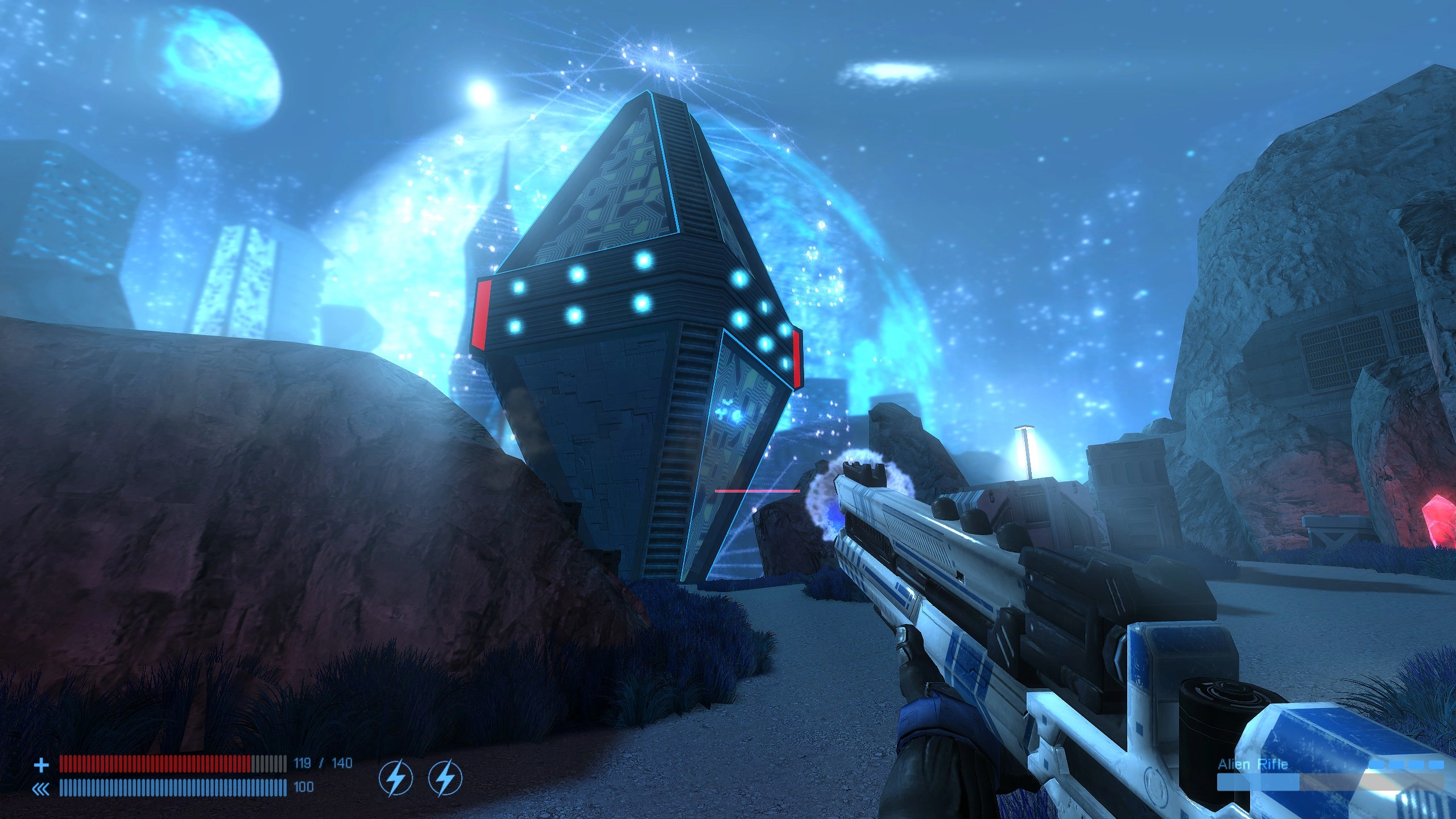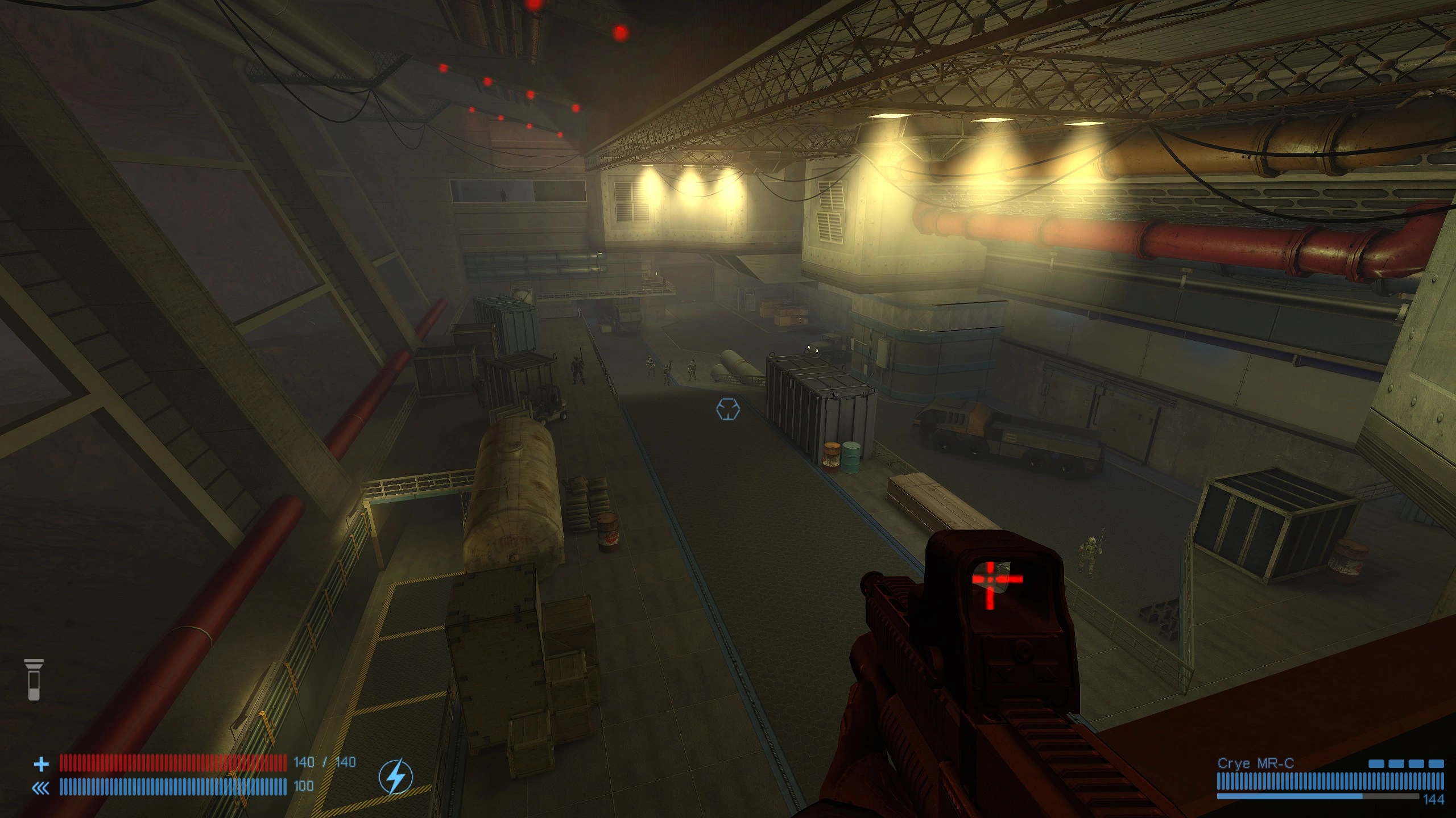 Xash3D permet des effets d’éclairage plus avancés, des jeux d'ombres réalistes et des textures retravaillées qui modernisent de manière intelligente l’esthétique rétro tout en reconnaissant les origines. Les lumières dans les zones industrielles, les contrastes dans les zones sombres et les nombreux petits éléments de décor renforcent l'immersion, rendant chaque endroit assez unique.