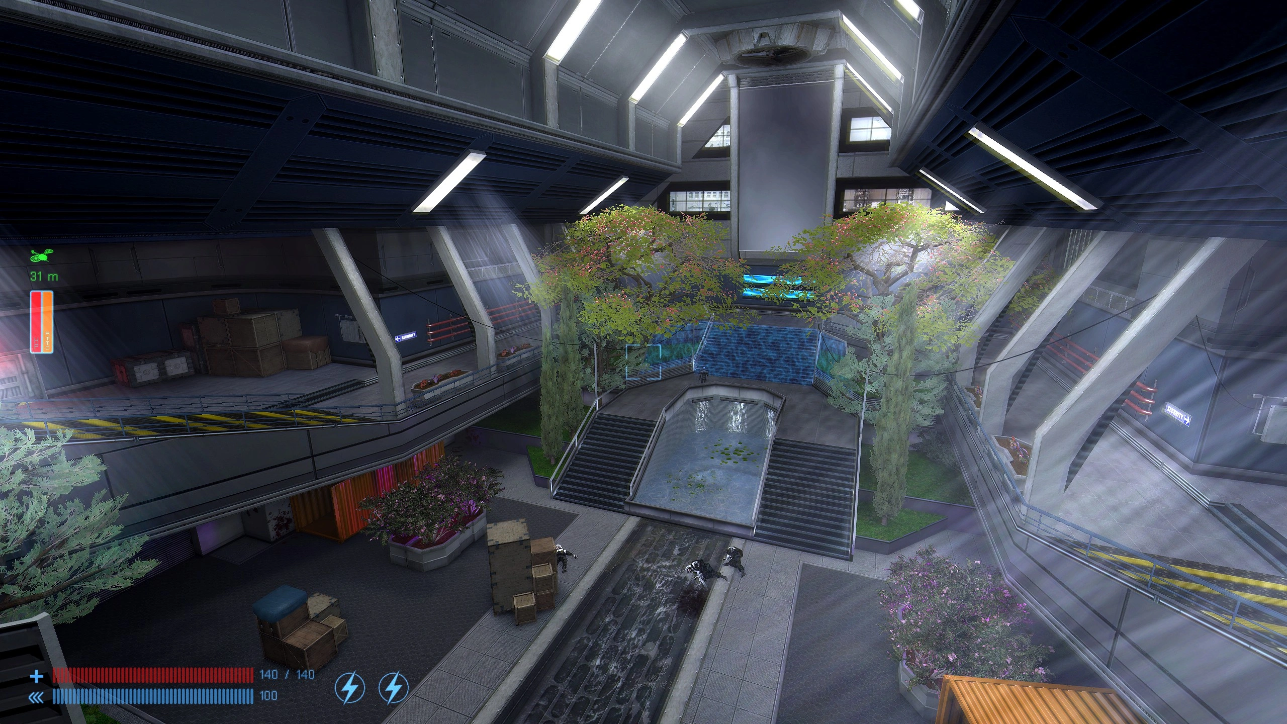 On note même des éléments animés comme des grilles de ventilation qui démarrent à l’approche du joueur, ajoutant une dimension supplémentaire de vie dans les zones.