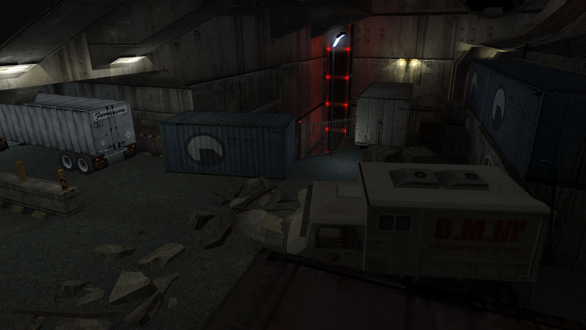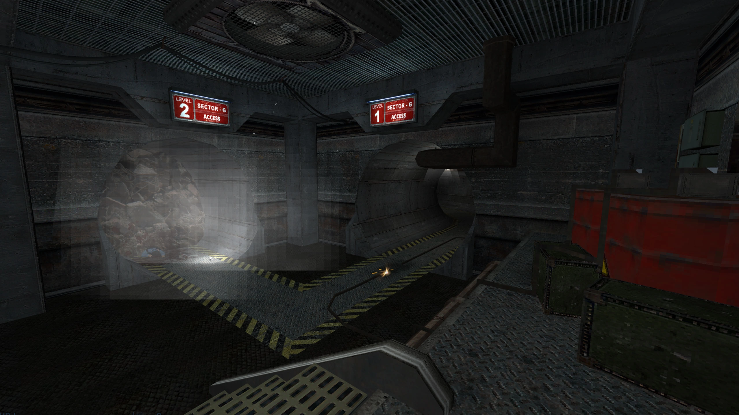 Le level design de Half-Life Crossfire propose une succession de zones variées tel que des bureaux, des cages d'ascenseurs, des tunels ou encore des zones de manutentions.