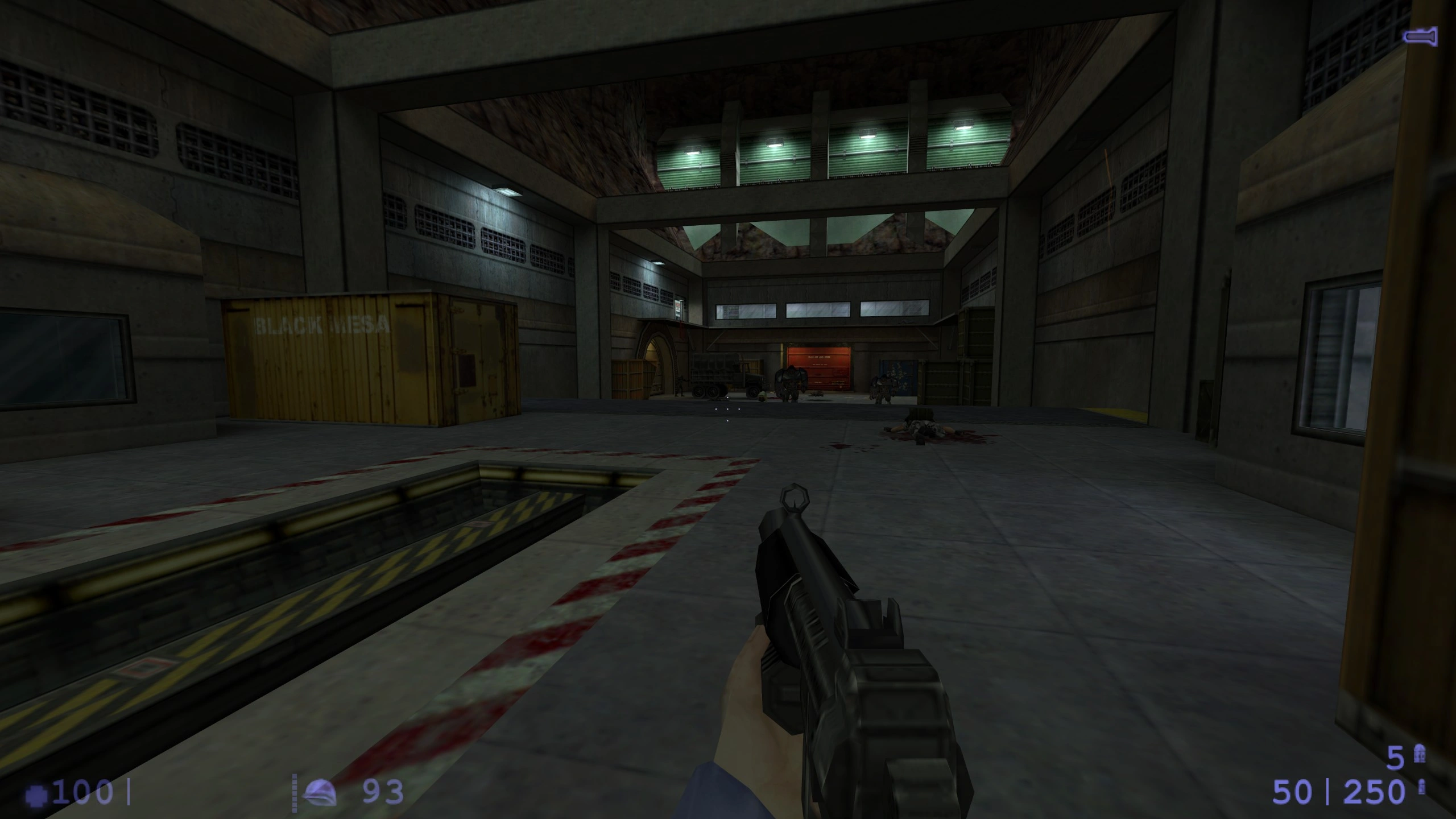 En lançant directement la partie avec le chapitre 5, je retrouve rapidement mes repères, le style de design, l’exploration, et les objectifs qui me sont familiers. Je me plonge dans une zone chaotique, où les soldats HECU et aliens s’affrontent dans une zone dévastée.